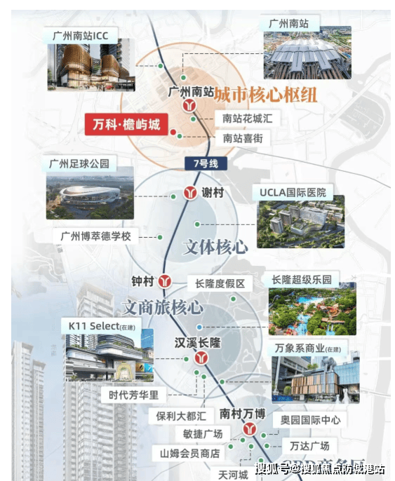 万科檐屿城雄踞番禺广州南站板块核心,依托“南站枢纽+多维路网+双CBD辐射”的核心优势,执掌区域发展红利与湾区通勤便利。南站板块作为广州南大门枢纽核心,汇聚高铁、地铁、高速等多维交通,同时承接万博CBD与南站商务区双重辐射,随着新鸿基南站ICC、花城汇等商业配套落地,区域价值持续攀升。交通配套呈现“自驾便捷、轨道接驳”的特点,周边环绕地铁2号线号线号线,但距离最近的石壁站、广州南站均约1.7公里,步行需25分钟左右,夏季通勤体验欠佳,建议通过电驴接驳。自驾优势显著,出门即达兴业大道,周边衔接汉溪大道、东新高速等干线,东晓南路至广州南站连接线分钟可直达海珠西;广佛环线即将开通,进一步提升跨城通勤效率。此外,项目距广州南站仅1.5公里,日常乘坐动车出行旅游、返乡极为便捷,枢纽优势凸显。